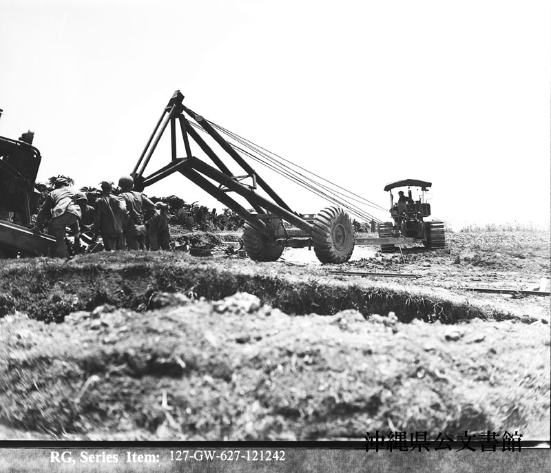【和訳】 前線から100ヤード足らずの場所で、補給路建設作業を開始したトラクター。