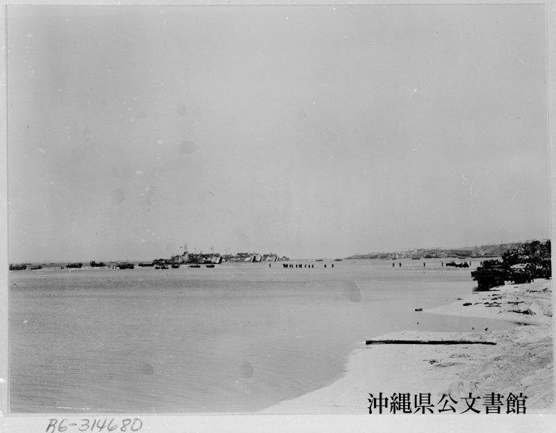 【和訳】 沖縄の海岸に揚陸される米軍部隊や補給物資。