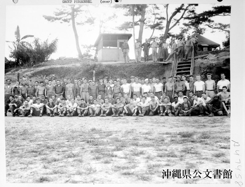 【和訳】 米軍政府病院所属の医療衛生下士官による集合写真。沖縄。
