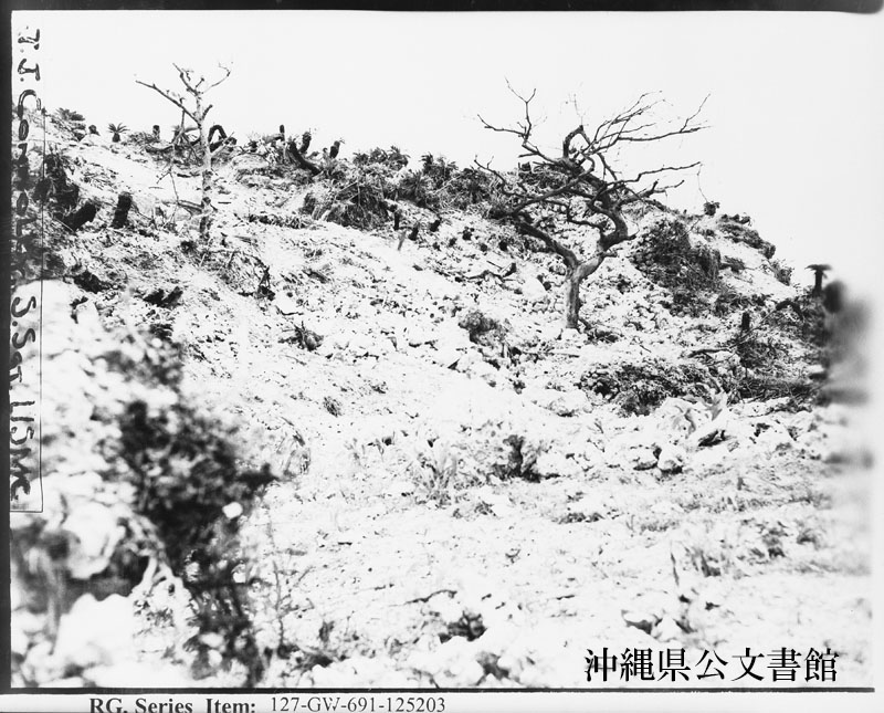【和訳】 6月4日の小禄半島上陸作戦で第4海兵連隊が上陸した海岸から見た内陸部の地形。