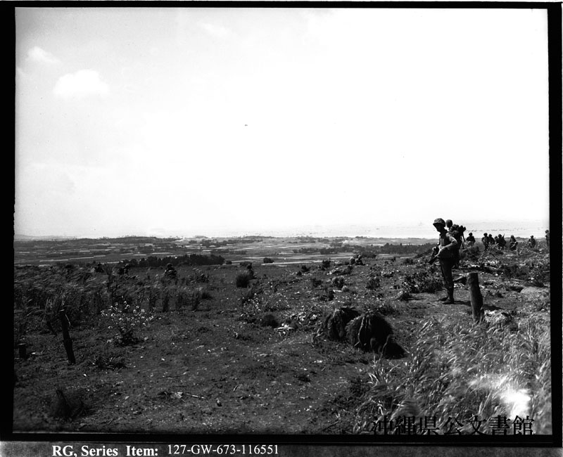 【和訳】 ブルービーチ1の平野を通って進軍する海兵隊員。