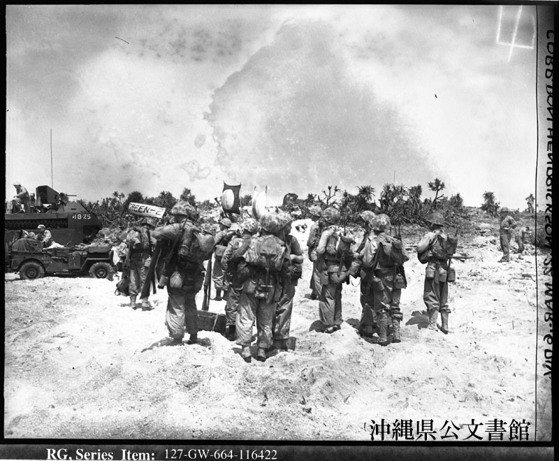 【和訳】 反撃を受けず海岸に上陸した海兵隊員。