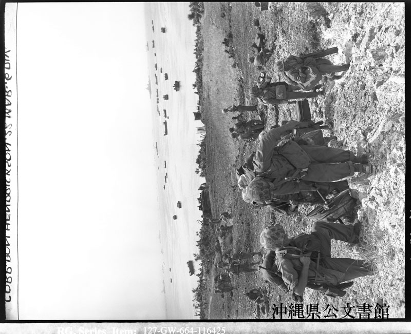 【和訳】 反撃を受けず海岸に上陸した海兵隊員。