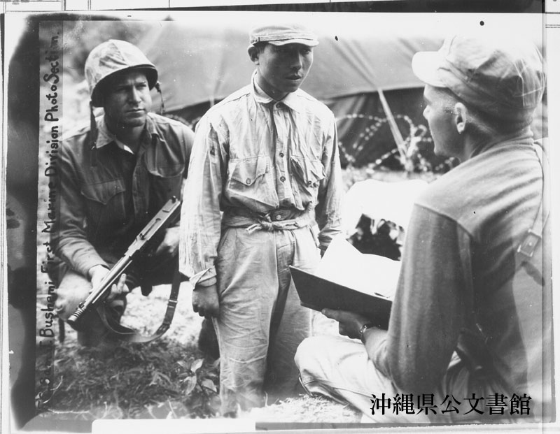 【和訳】 POW服を受け取った後、海兵隊将校と話す日本兵。
