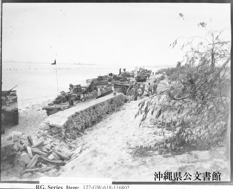 【和訳】 上陸日午後1時、第1海兵師団前線、ブルービーチ#1において戦闘の痕跡や徴候は一つも見られない