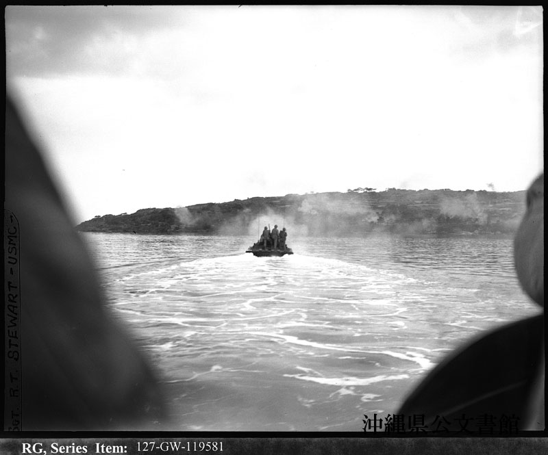 【和訳】 奪取前、今帰仁集落を砲撃する第1装甲水陸両用戦車大隊