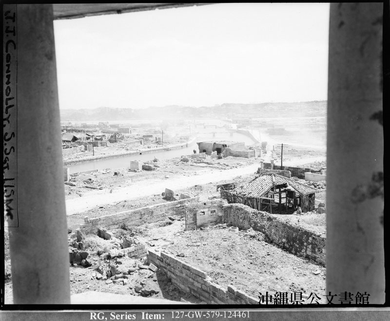 【和訳】 那覇港と安里川を結ぶ運河。運河にかかる橋が破壊されていることに注目