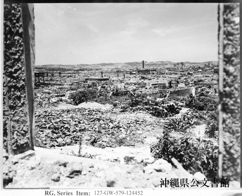 【和訳】 廃墟と化した那覇。首里の丘に向かって東側、通常那覇の中心とされるところからの眺め