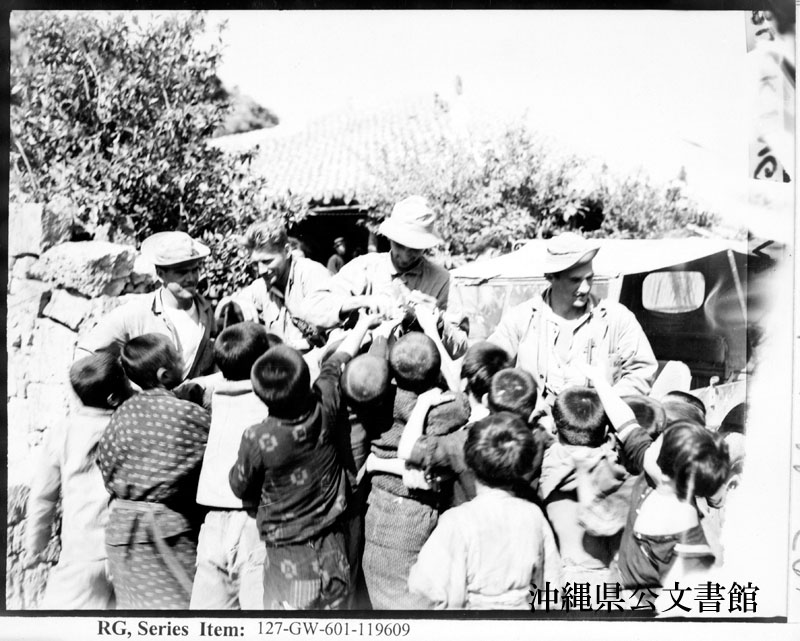 【和訳】 沖縄の子供たちに食べ物を与える海兵隊員
