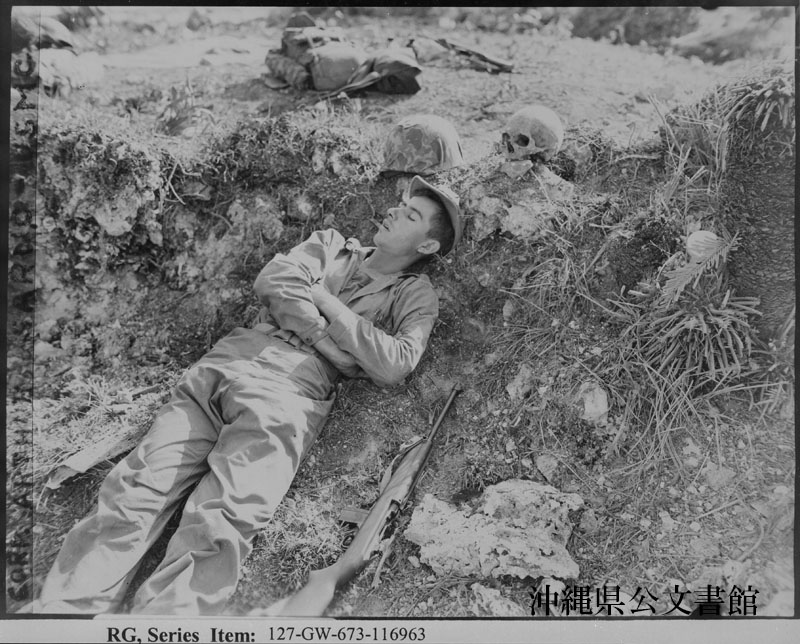 【和訳】 疲れきって場所など気にせずに眠り込む海兵隊員。頭蓋骨に注目。