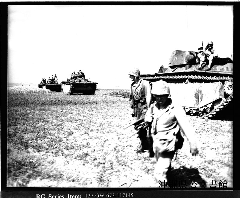 【和訳】 沖縄を横断する海兵隊員。