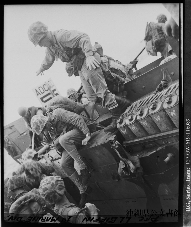 【和訳】 Pボートから上陸用装軌艇へ乗り移っている