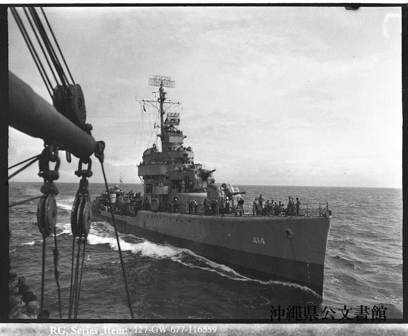 【和訳】 戦艦ペンシルバニアに横付けする駆逐艦。