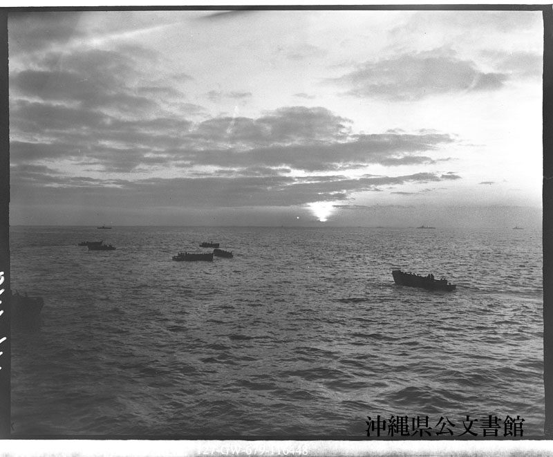 【和訳】 上陸のために集まった揚陸艇の数々。