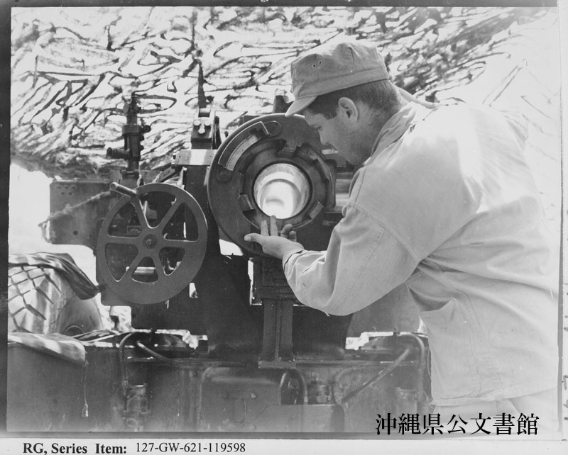 【和訳】 兵士たちが大砲をよい状態に保てるよう、155ミリ榴弾砲を点検する砲兵中隊のサイア四等准尉