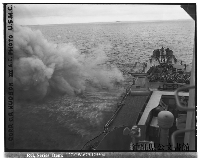 【和訳】 沖縄島の最南端にいる陸軍第7師団を援護するための砲撃。