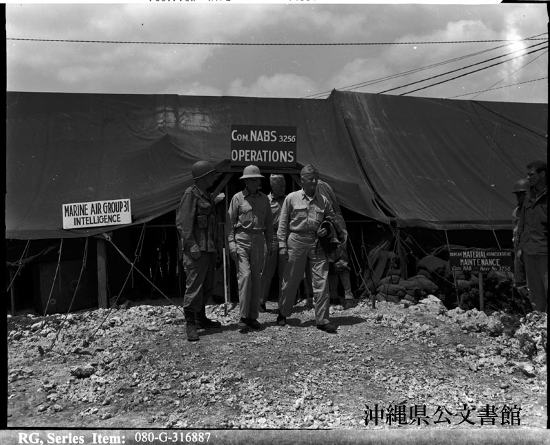 【和訳】 沖縄視察中の米海軍ニミッツ元帥と高官。