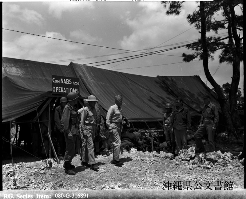 【和訳】 沖縄視察中の米海軍ニミッツ元帥と高官。